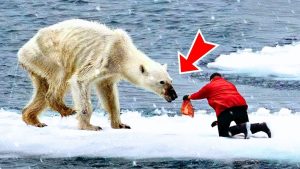 That’s when local fisherman Ivan Petrov decided to take a risk. While others watched from a distance, wary of the bear’s strength, Ivan cautiously approached with food—fresh fish and seal meat. The bear, too weak to resist, simply looked up at him with tired eyes. Over the next few days, Ivan continued feeding the bear, keeping his distance but gaining its trust.