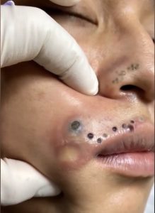 An abscess near the mouth can often be linked to acne, also called “acne vulgaris,” a long-term skin condition that happens when “dead skin cells and oil from the skin clog hair follicles.” It usually shows as blackheads, whiteheads, pimples, oily skin, and sometimes scarring, affecting areas rich in oil glands like the face, chest, and back.