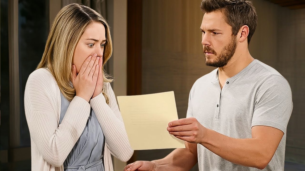 A wedding ceremony at the Forester mansion erupted into chaos when Liam Spencer exposed a disturbing secret about Thomas Forrester just as Hope Logan was about to say “I do.” The air was thick with tension as Liam, visibly shaken and clutching a leather folder, declared, “You can’t marry him!” The moment sent shockwaves through the assembled guests, freezing Hope in her bridal gown, bouquet slipping from her hands as the truth unraveled before her.